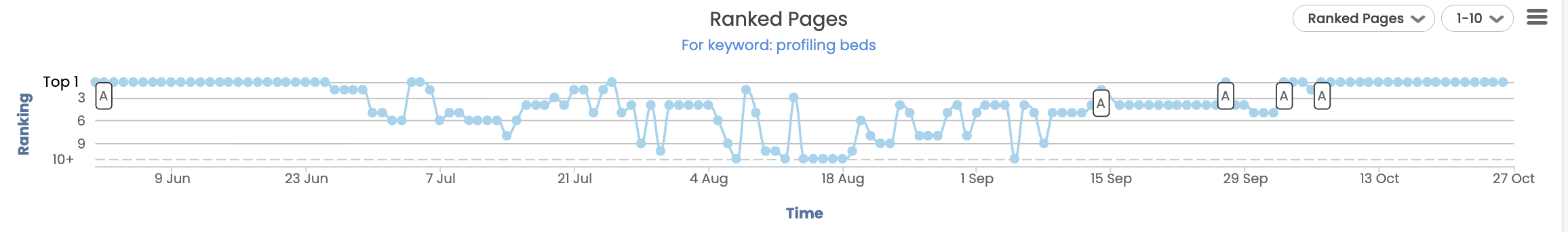 What had been a stable ranking for a core conversion-driving search term was suddenly jumping about daily; with clicks and sales down as a result.