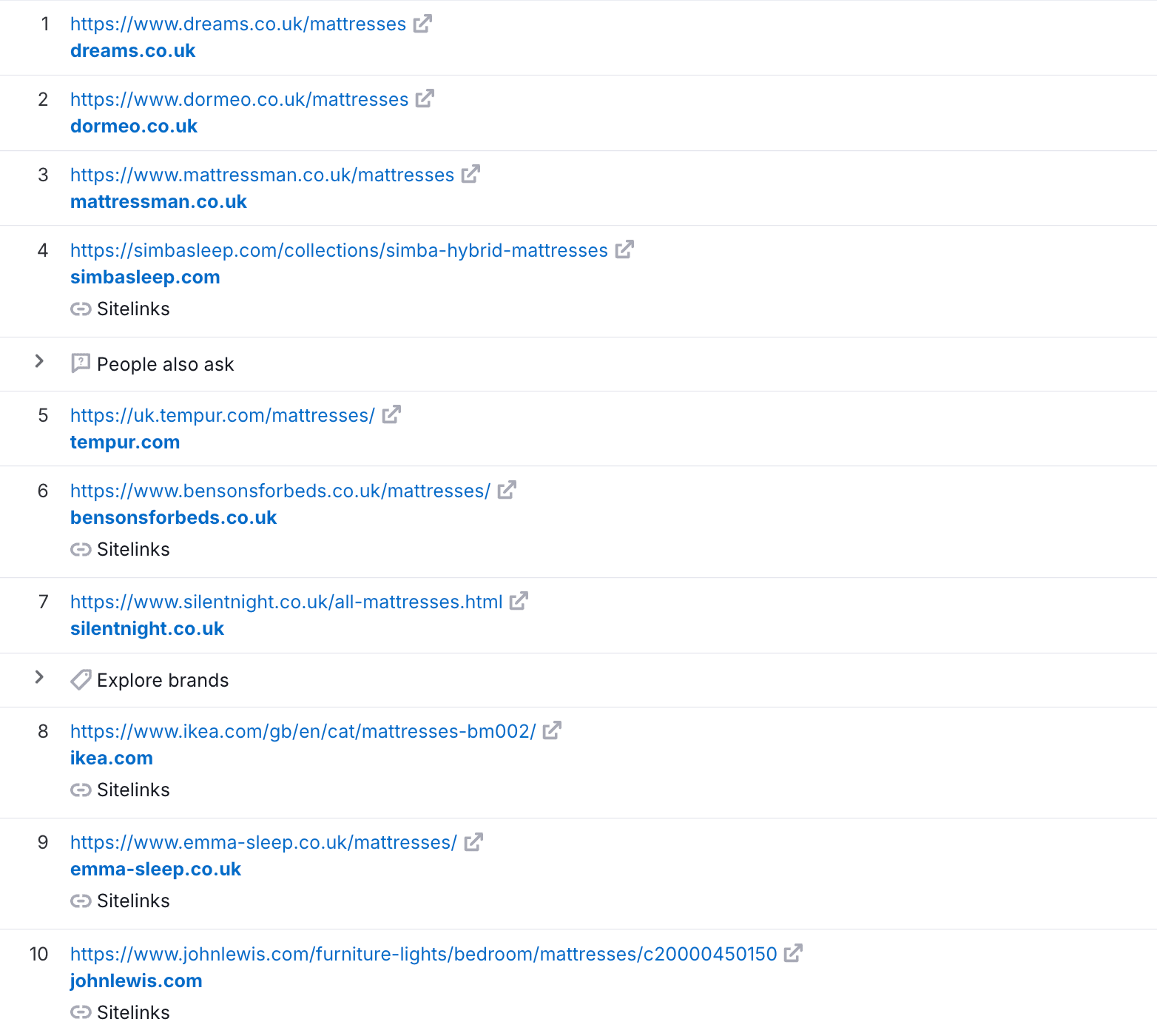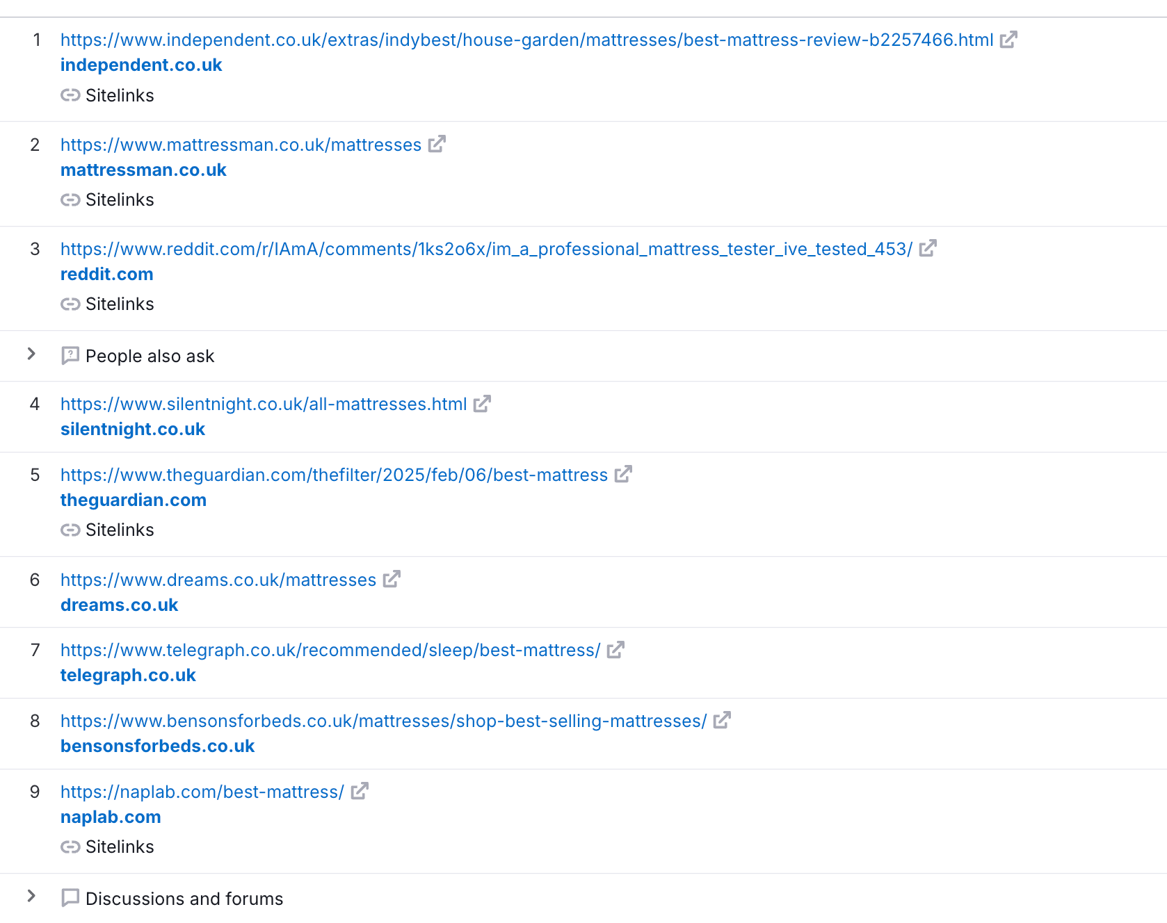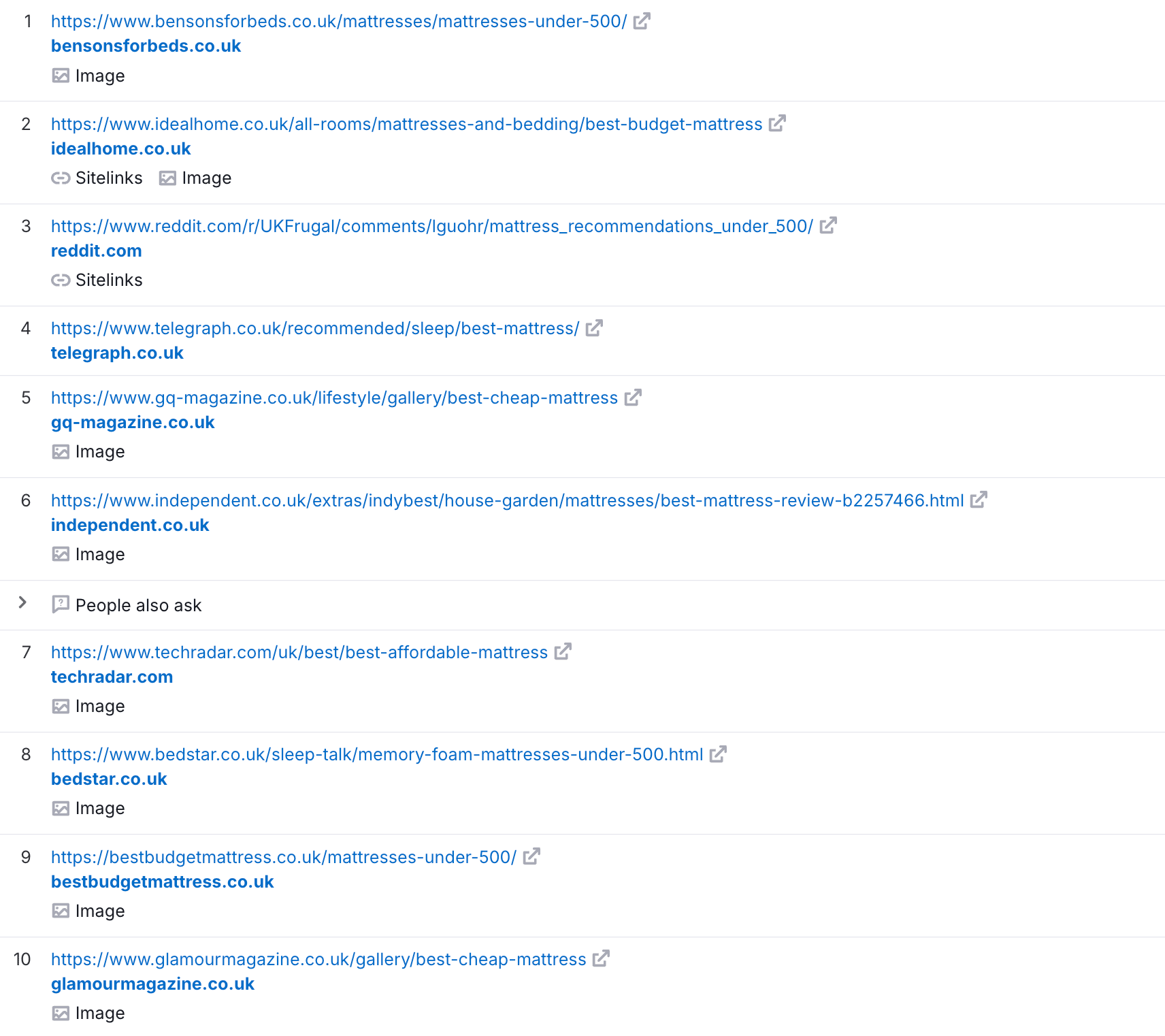 Let's go back to back to the last example I gave, of the SERP for 'best mattress under £500.'